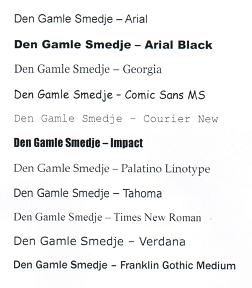 Her ser du de skrifttyper, som du kan vælge imellem (skriftvægt: normal):
